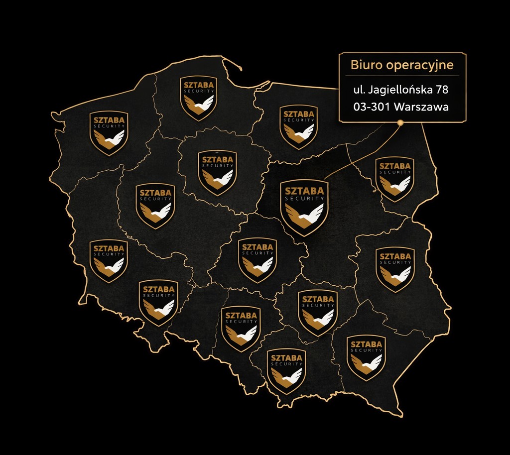 Sztaba Security Sp. z o.o. to profesjonalna agencja ochrony osób i mienia, świadcząca kompleksowe usługi ochrony na terenie całej Polski. Zapewniamy skuteczną ochronę fizyczną obiektów, monitoring wizyjny, patrole interwencyjne oraz specjalistyczną ochronę osobistą VIP. Siedziba firmy znajduje się w Warszawie, jednak realizujemy usługi ochrony w każdym regionie kraju.